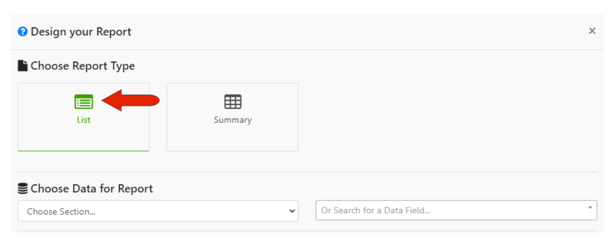 Note: The Choose Data for Report section is used when you want to include data from another report. This will be covered in the article on creating a custom report.