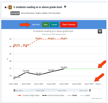 Click Add Point for each new time period you want to add to the graph. This adds a dashed forecast line that maintains the current value by default.