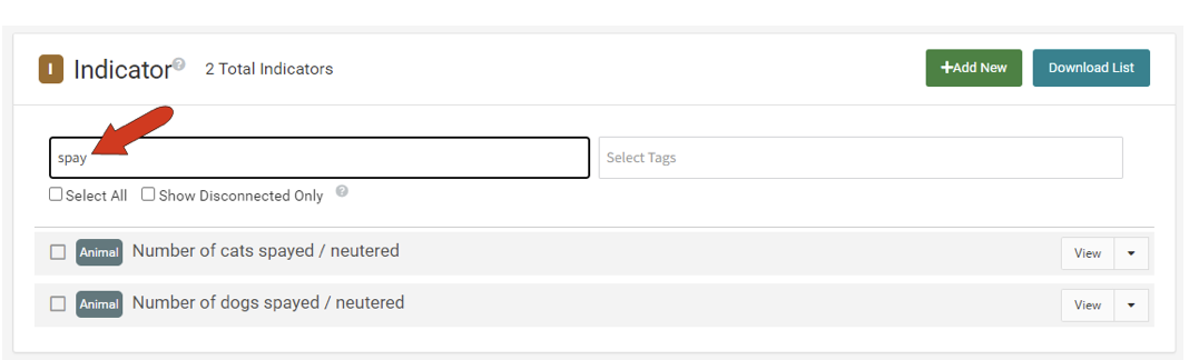 You can search for an indicator by entering any part of the indicator name in the search field.