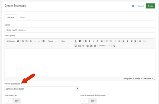 If parent scorecards are not created in advance, you can always assign a parent scorecard when editing a scorecard.