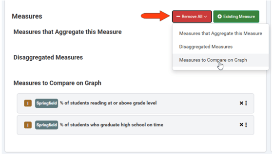 If the measures you selected are incorrect, or if you want to remove the compared measures, click Remove All and choose Measures to Compare on Graph.