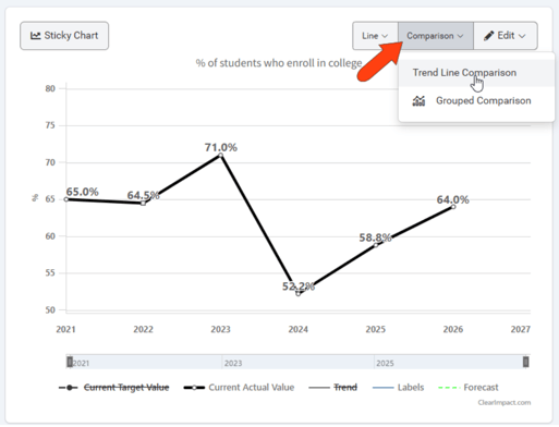 Once the compared measures are established, return to the graph and choose Comparison / Trend Line Comparison.