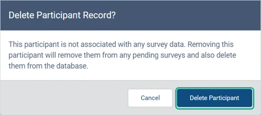 When you click the Delete button, the delete confirmation window will appear. Click Delete Participant to fully remove the record.