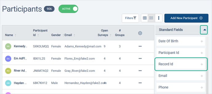 - Standard Fields: built-in participant fields, like first name, and system fields, like Created Date