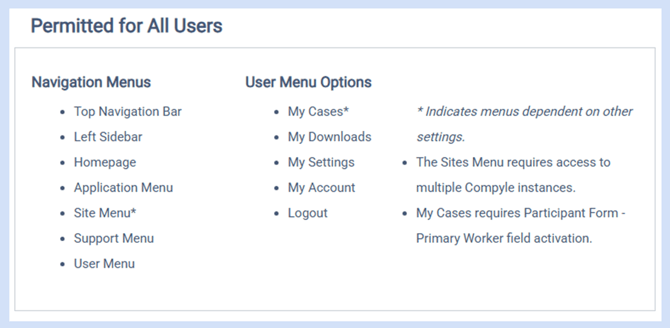 These are the privileges that each and every active user has. They allow users to move through the different areas of Compyle and access resources.