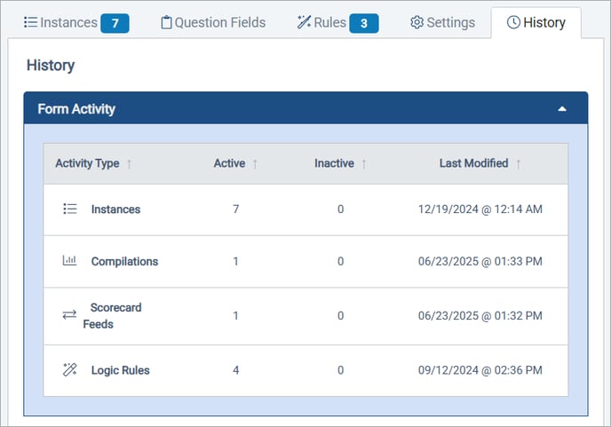 Several of the tabs in the Form Management Folder are getting updates with this release to make it easier to manage forms: the Rules tab, the History tab, and the Instances tab.