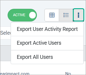 Three new exports for retrieving information about users are available from the : action menu at the top of the user list.