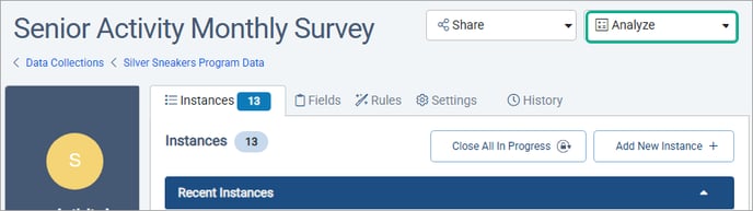 You can also create a compylation directly from a survey, by opening the Survey Form Management Folder and expanding the Analyze menu at the top right.