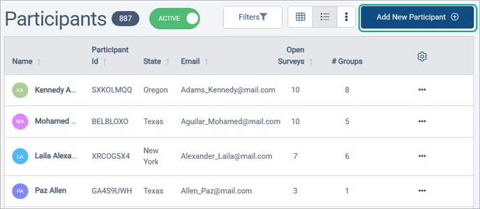 There are several ways to add participants to your Participants list, and this article covers how to create a participant manually within Compyle. You can also import participants from a spreadsheet, and participants can be created by new survey respondents when completing a survey.
