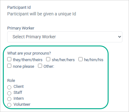 The Primary Worker field is used for case management, to assign the participant record to the My Cases shortlist for the user who will work with that participant. My Cases appears on the homepage and under Participants in the left sidebar navigation menu.