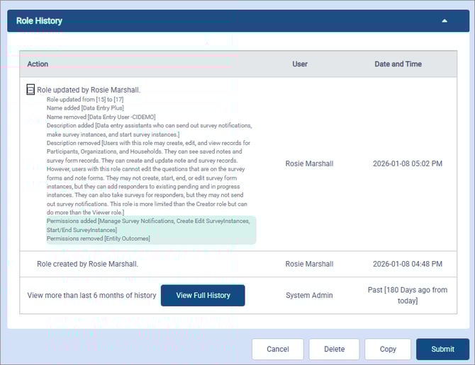 At times, an organization needs to know not only what users can access now but what they could see in the past and when their access changed. Compyle captures each time a role is saved and details specifically how the role was edited.
