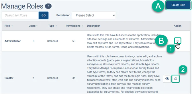 2. Select the Copy button to make a role based on an existing role.