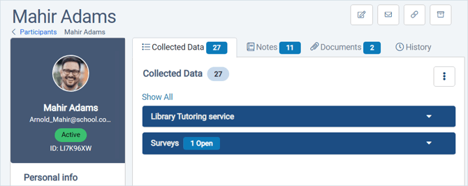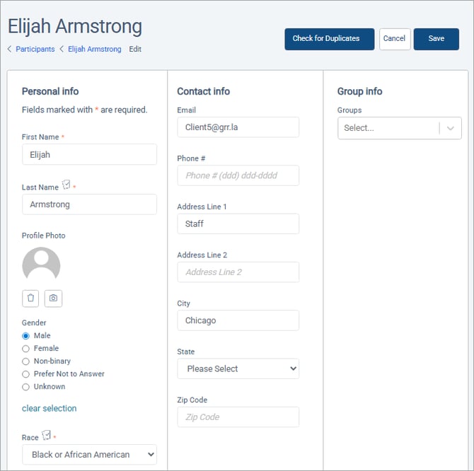 The Edit button opens the participant’s profile, where you can update the information for the Participant form record.