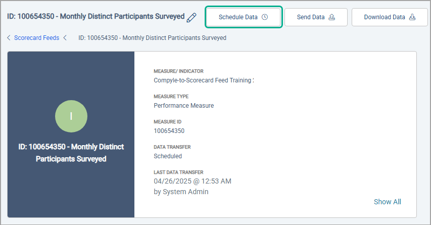 When the Compyle-to-Scorecard Feed overview opens, click the Schedule Data button.