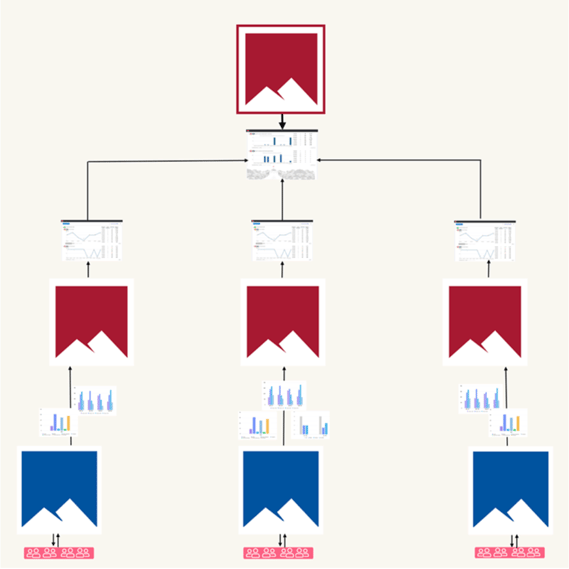 Each Compyle instance can collect its own participant data through surveys/forms/etc. That information can be aggregated into compylations and sent through Scorecard Feeds to that organization’s associated Scorecard instance. (Note: Each Compyle instance can only send data to the single Scorecard instance that it is associated with. Only aggregate and disaggregated summary data can be transferred.) Once in Scorecard, summary data can be shared with the parent instance as well as any other partner instance via the Scorecard Partner Connect feature.