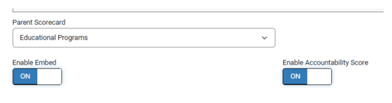 A scorecard can be configured as stand-alone (no parent scorecard) or with “parent-child” hierarchy. The hierarchy setup typically involves using a blank scorecard as the parent that contains multiple child scorecards. In this example, the scorecard will be added to the broader “Educational Programs” category of scorecards.