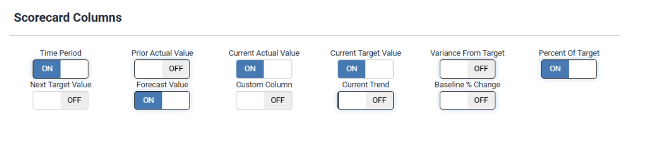 The last step is to choose the scorecard data columns that will be displayed. There are 11 columns to choose from, and up to six can be displayed at a time, though typically you’ll only need two to four. You can always change scorecard columns later, when editing the scorecard, if you want to present data in different ways.