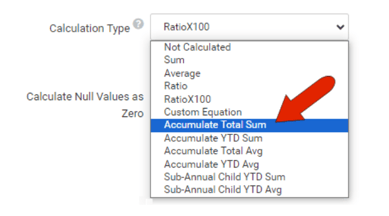 - Accumulate Total calculations take data across all time periods, with no reset.
