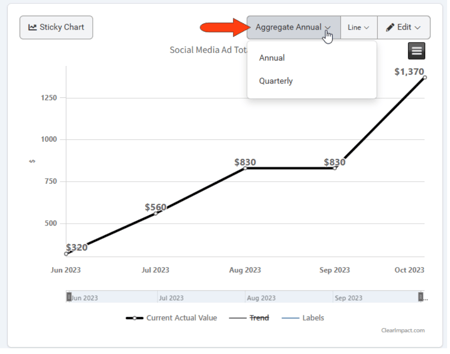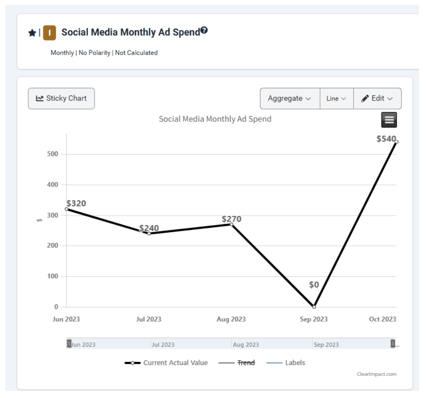 In this example, the disaggregated measure is “Social Media Monthly Ad Spend,” showing money spent each month.