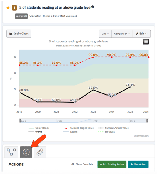 To add an action to a measure, open the measure view. Below the data graph, click the Action icon to open the Actions tab.