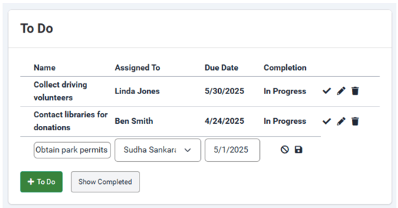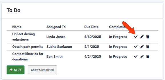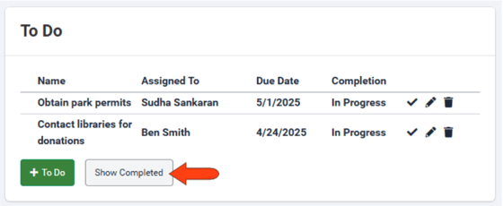 By default, completed to-dos are removed from the list. Clicking Show Completed brings back all to-do’s.