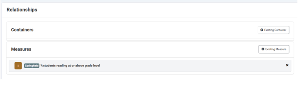 Relationships: This section lists all containers and / or measures to which the action has been added. You can also add the action to an existing container or measure.