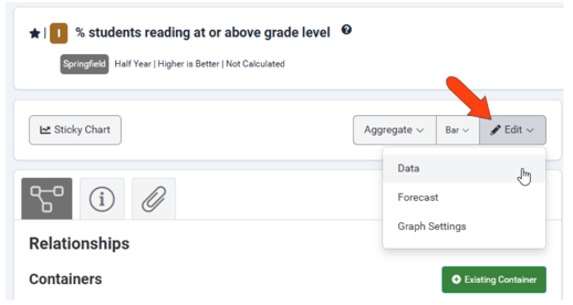 You can add or edit data by clicking Edit Data again, change graph settings, and continue editing the other parts of the measure.