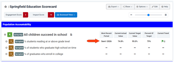 When viewing any scorecard that includes this measure, the data summary appears for that measure.