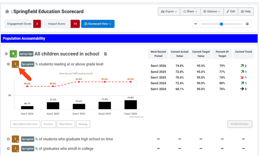 Analyzing the data in a scorecard is how the success of a result or program is determined. The indicators and performance measures added to a scorecard’s result or program containers are where this data is entered.