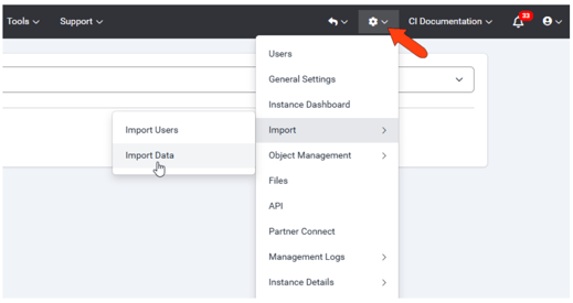 To import a data spreadsheet, click the Administration icon and choose Import / Import Data.