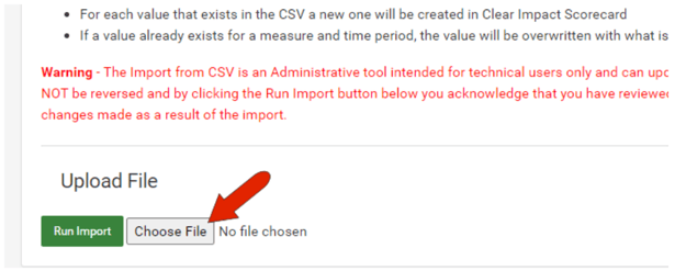 Then use Choose File to find the file, and once uploaded, click Run Import.