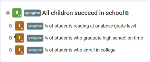 Indicators and performance measures are types of measures that help quantify achievement or success.