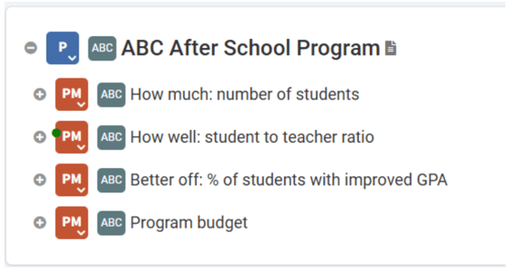 Performance measures are typically used to quantify the achievement of a program, answering “how much,” “how well,” or “better off” questions. Examples of a performance measure could include: