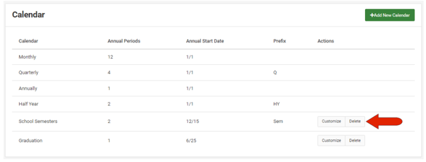 After clicking Save, the calendar is added to the list. You can delete a calendar if it’s not already in use in a measure, or click Customize to assign names to time periods.