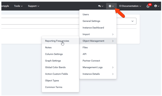 To add calendar frequencies, click the Administration icon and choose Object Management / Reporting Frequencies.