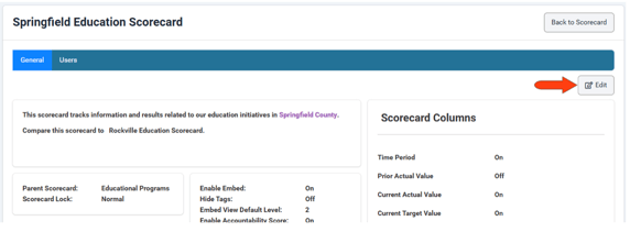To change scorecard columns, first edit the scorecard, then click the Edit button at the top.