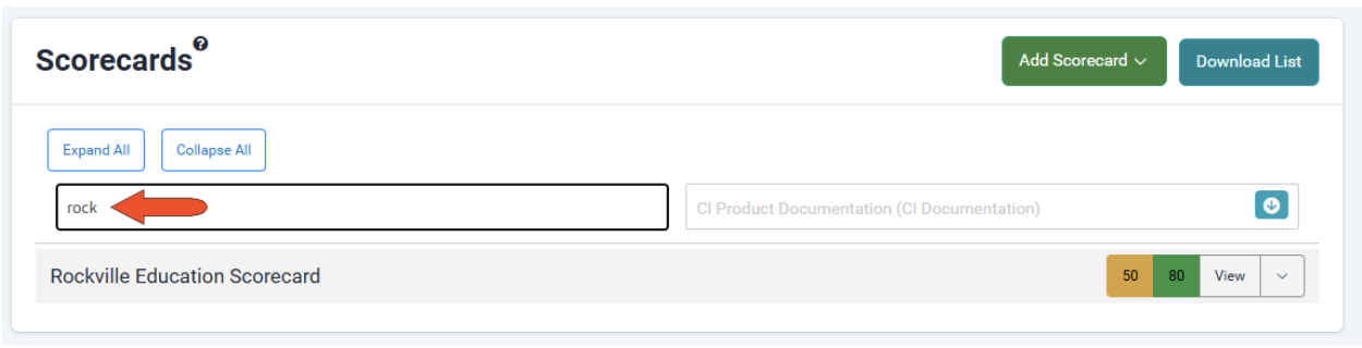 To find a specific scorecard, enter any characters from a scorecard name to filter the list.