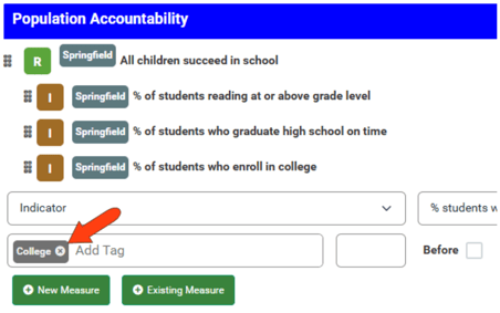 Tags can be applied to any scorecard object, including results and programs, indicators and performance measures, variables, and any other objects that may be configured for your instance.