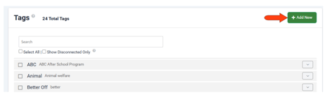 The tag is added to the Tags list, and each tag has a drop-down arrow that displays options to Edit or Delete the tag. Use caution when deleting a tag! It will be deleted from all objects to which it is assigned, and deleting cannot be undone.