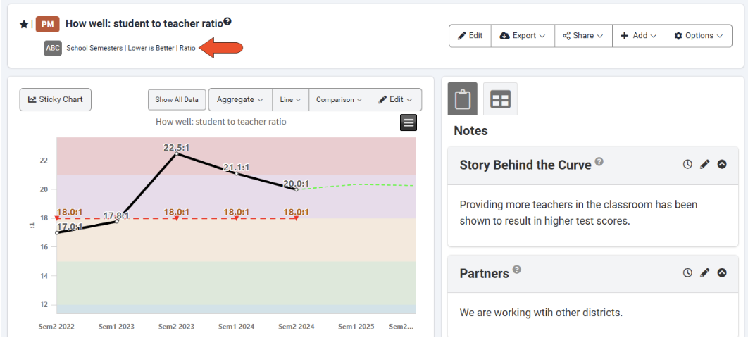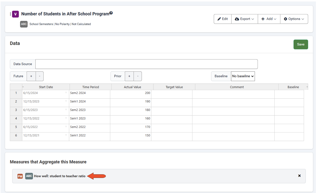 As an example, the performance measure shown below uses a ratio calculation. The source data comes from two disaggregated measures.