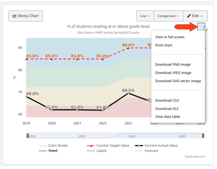 - Share: Get Embed codes for sharing the measure on a site hosted by you or by Clear Impact