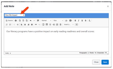 Note: Users with admin permission can configure the default set of notes included with each measure type. Admin users can also edit system-defined notes or create new note types.