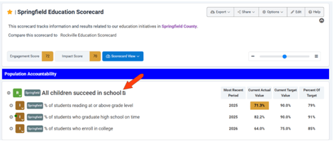 One way to view a result or program is to start by viewing a scorecard that contains the result or program. Then click the result or program name.