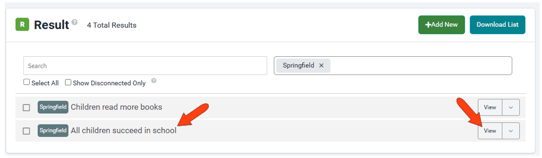 Or you can open the Results list or Programs list, search for the result or program you want to view, and click its name or View button. (If you have long lists of results or programs, or your lists include multiple results or programs with similar or identical names, tags enable you to filter your search.)