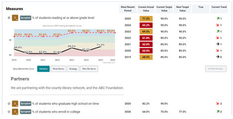 Below result notes are the measures (indicators, performance measures, or variables) associated with the result. Each measure can be expanded to show its graph and data, and any notes assigned to measures can be viewed here as well.
