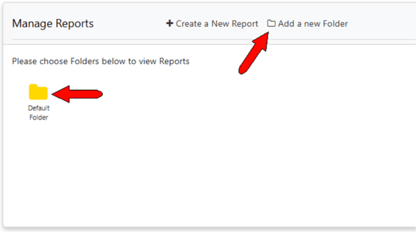This opens the Report Builder page, with a default folder for reports. There is also a link to Add a New Folder if you need additional organizational options.