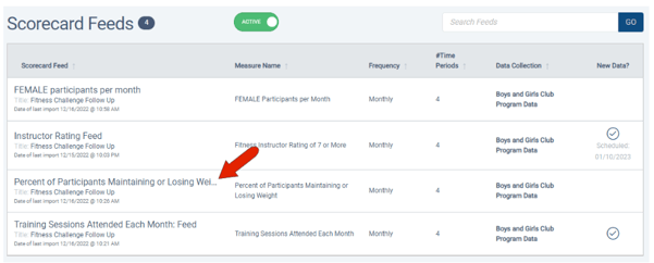 Start in the Scorecard Feeds list, and click any field for the feed you want to archive.