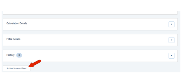 In the scorecard feed details page that opens, scroll all the way to the bottom and click Archive Scorecard Feed.