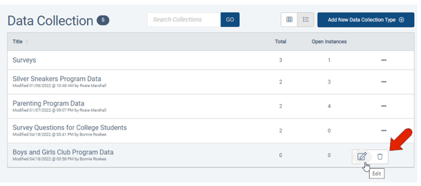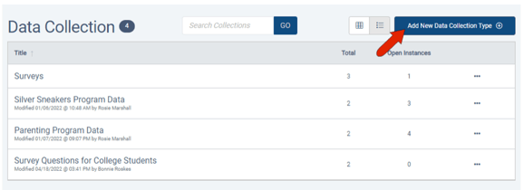 Or, if your Data Collection list is open, you can click the Add New Data Collection Type button at the top right.