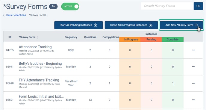 . . . or open Data Collection in the sidebar, and choose All Survey Forms.